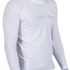These shirts are a great first layer under wetsuits or a great stand alone shirt for the beach, lake or pool. Order the same size as your wear in a t-shirt for a loose type fit. For layering under a wetsuit, we recommend going down one full size from your normal t-shirt size.