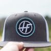 Features a wool blend, structured crown, mesh back, flat bill with a classic snapback design, and a large embroidered Hyperflex circle “HF” logo patch.